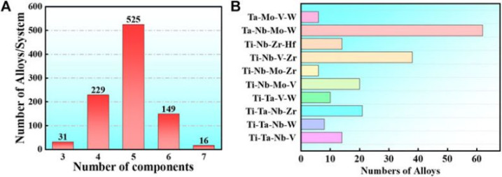 结构材料:轻质HEAs(如Al-Li-Mg-Ti系)、耐高温HEAs(如NbMoTaW)、耐辐照HEAs(用于核反应堆内衬);